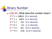 Number Representation Lecture Topics How are numeric data items actually stored in computer memory? How much space (memory...