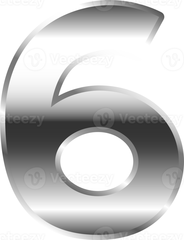 Silver Metal Number 6 36273395 PNG Silver Metal Number 6