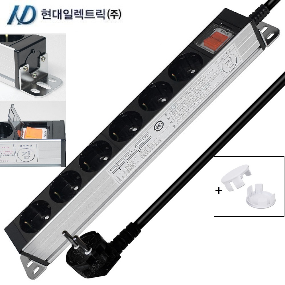 국산 현대 멀티탭 알루미늄 서버탭 랙용 블랙 과부하차단