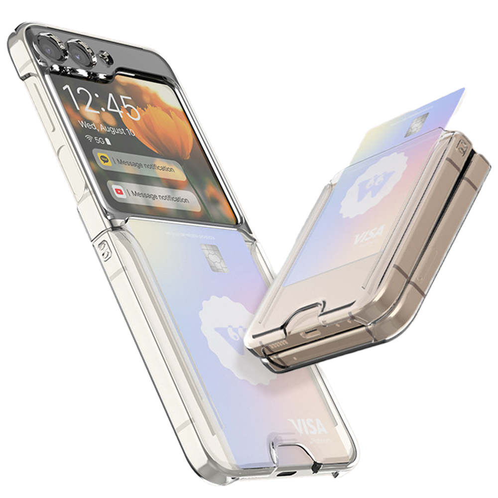 변색방지 카드 수납 범퍼 케이스 투명, 갤럭시Z플립